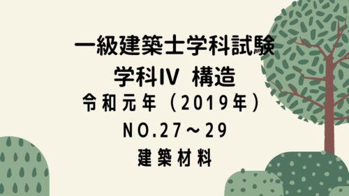 一級建築士試験 構造Ⅳ【令和元年度(2019年度)】の建築材料について解説します。ここでは、木造、コンクリート、鋼材の各材料について問われています。 〔No.27〕木材に関する次の記述のうち、最も不適当なものはどれか。 1 .木表は、一般に、木裏に比…